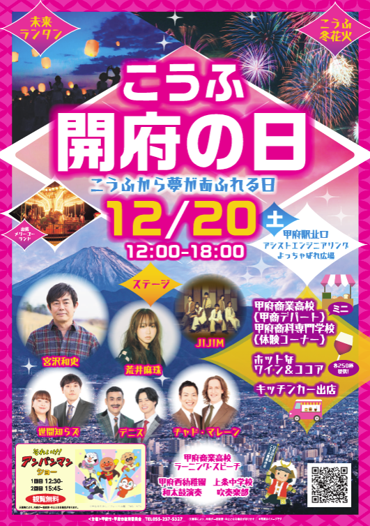 【甲府市】12/20は「こうふ開府の日」記念イベント開催!豪華ステージ、ワークショップ、花火で祝おう