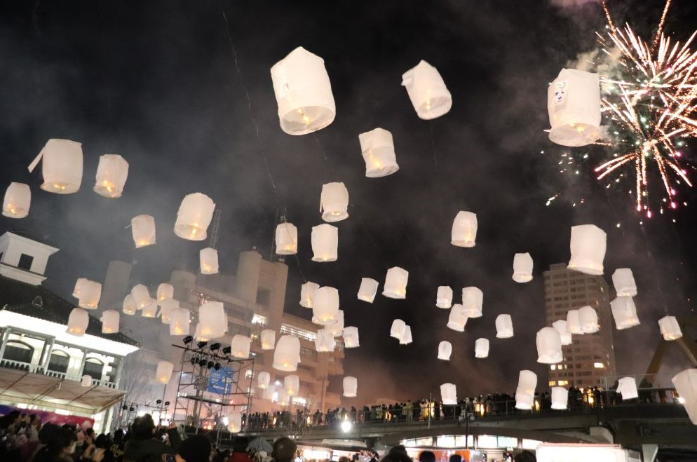 フィナーレは、「未来ランタン」と「こうふ冬花火」。