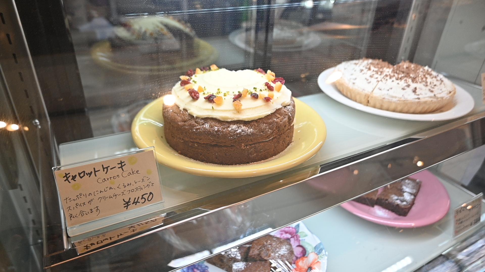 キャロットケーキもふわふわしっとり、ナッツがたくさん入っていて、華やかな気分になりました。