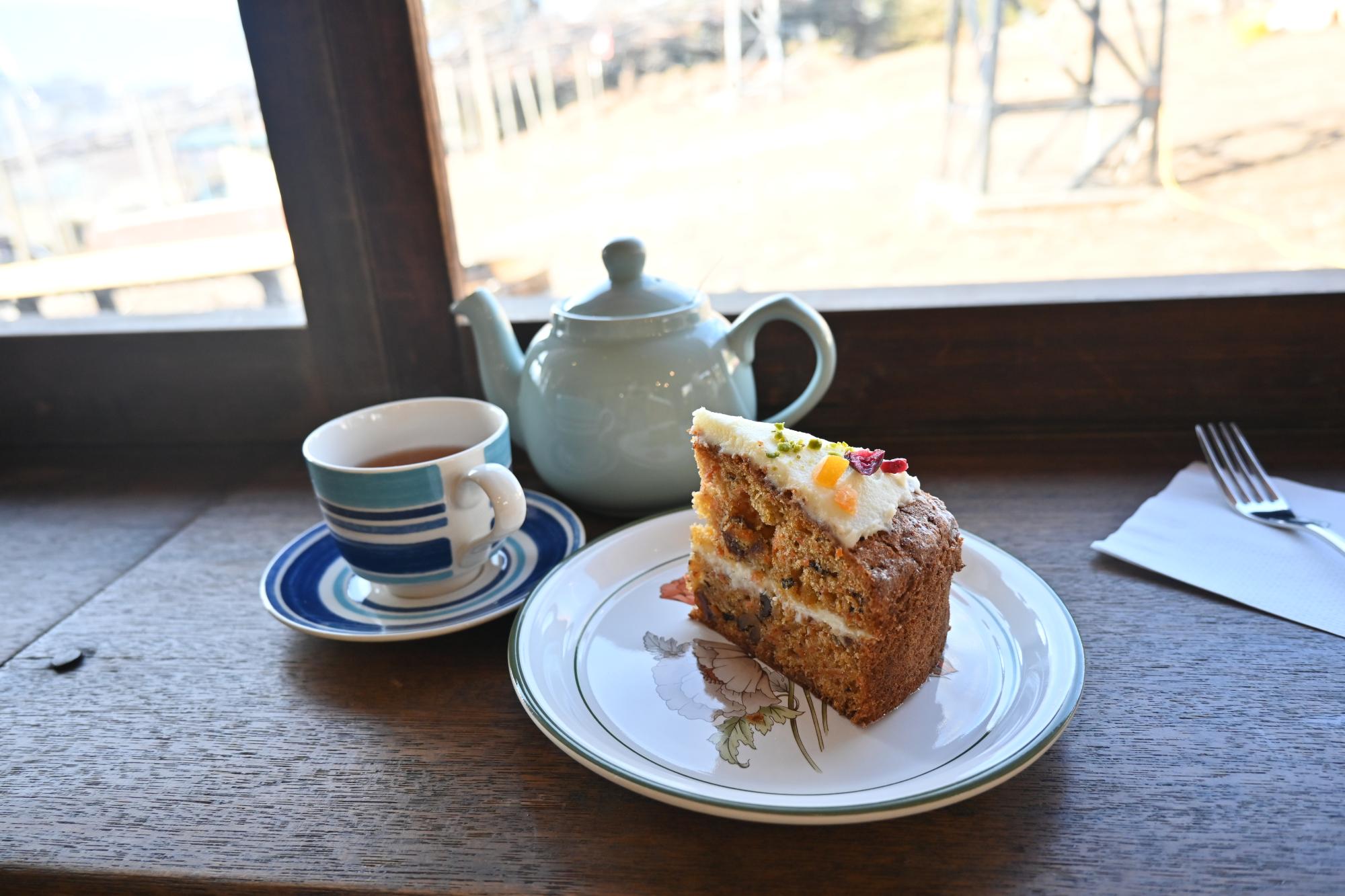 こちらは、キャロットケーキと紅茶です。