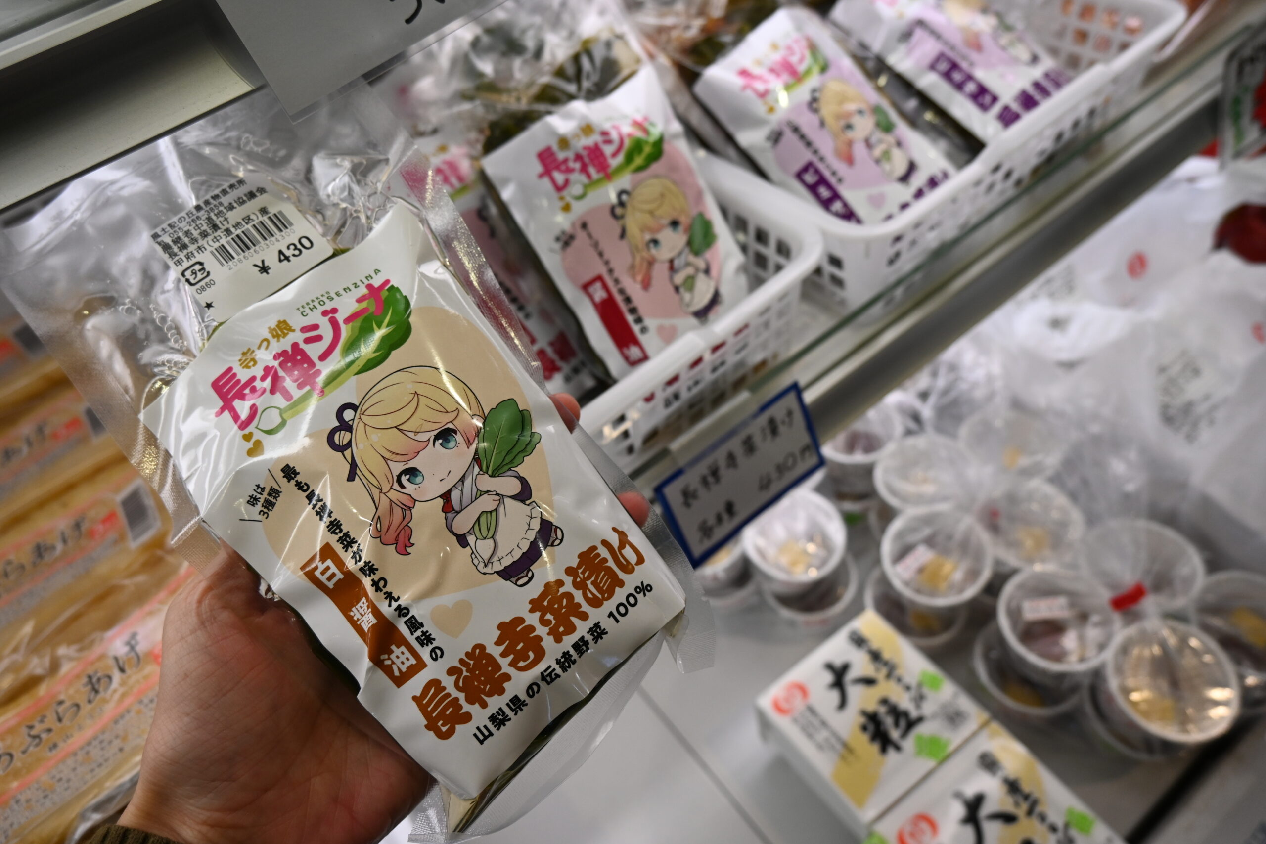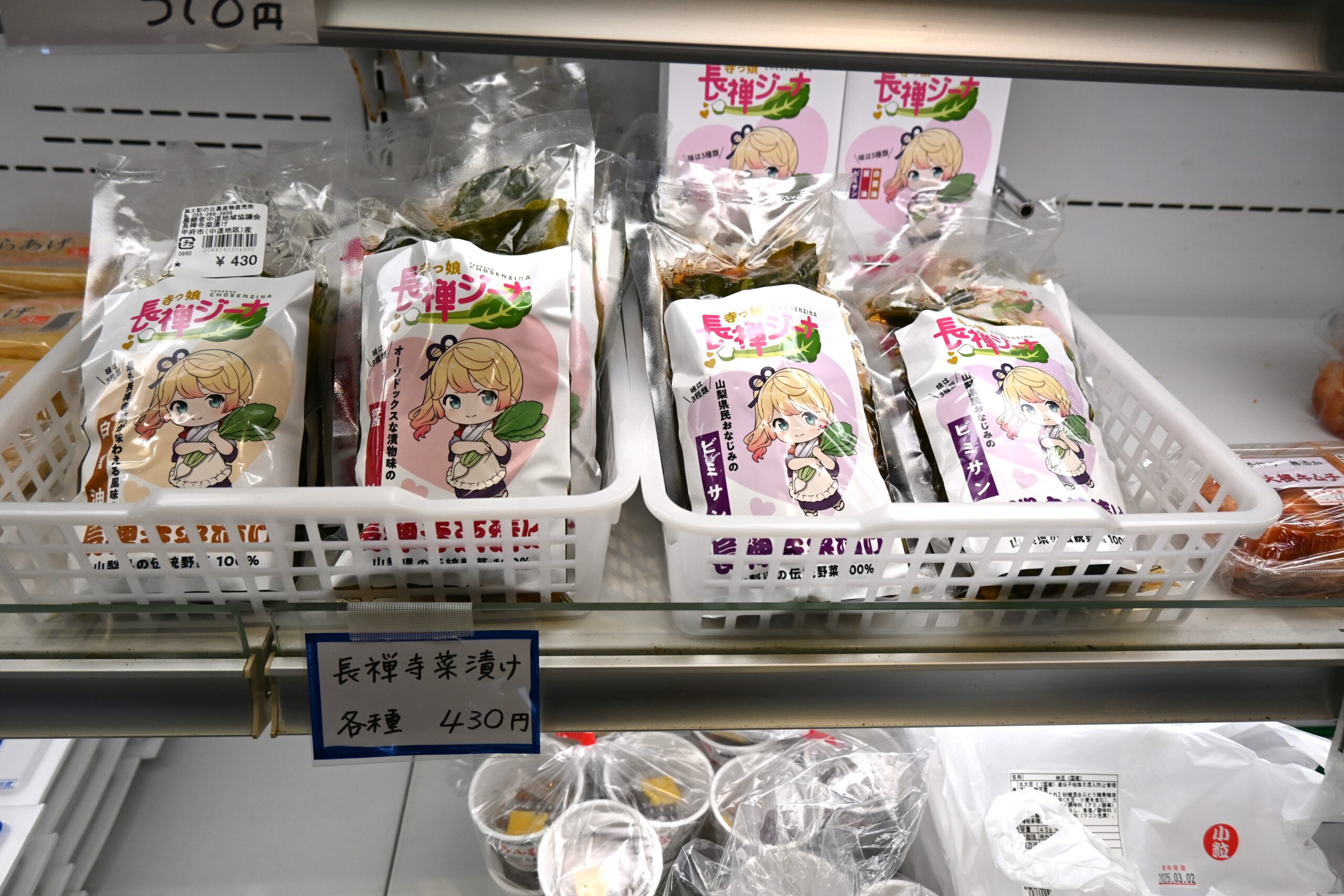 店奥にあるショーケース内に長禅寺菜の漬物がありました。