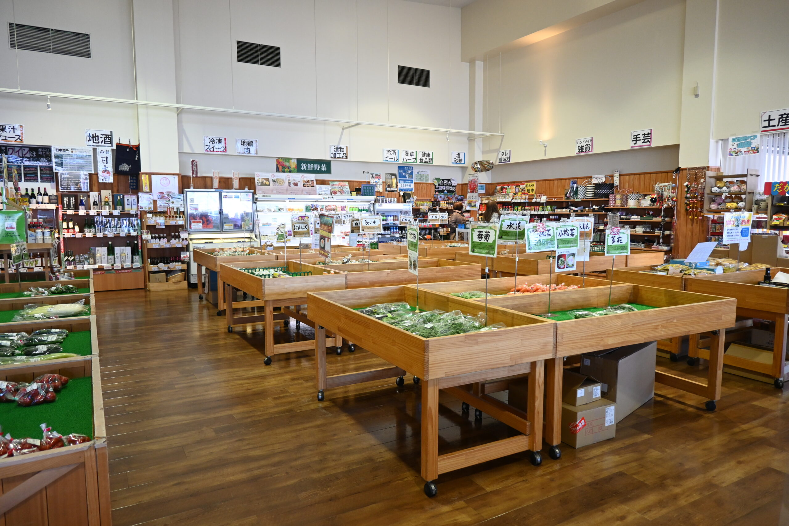 農産物直売所では新鮮な野菜や加工品などが並びます。
