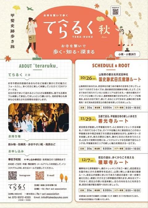 【甲府市】”てらるく” 秋冬ツアー申込開始!ディープな話にワクワク体験!お寺を繋いで歩く1日
