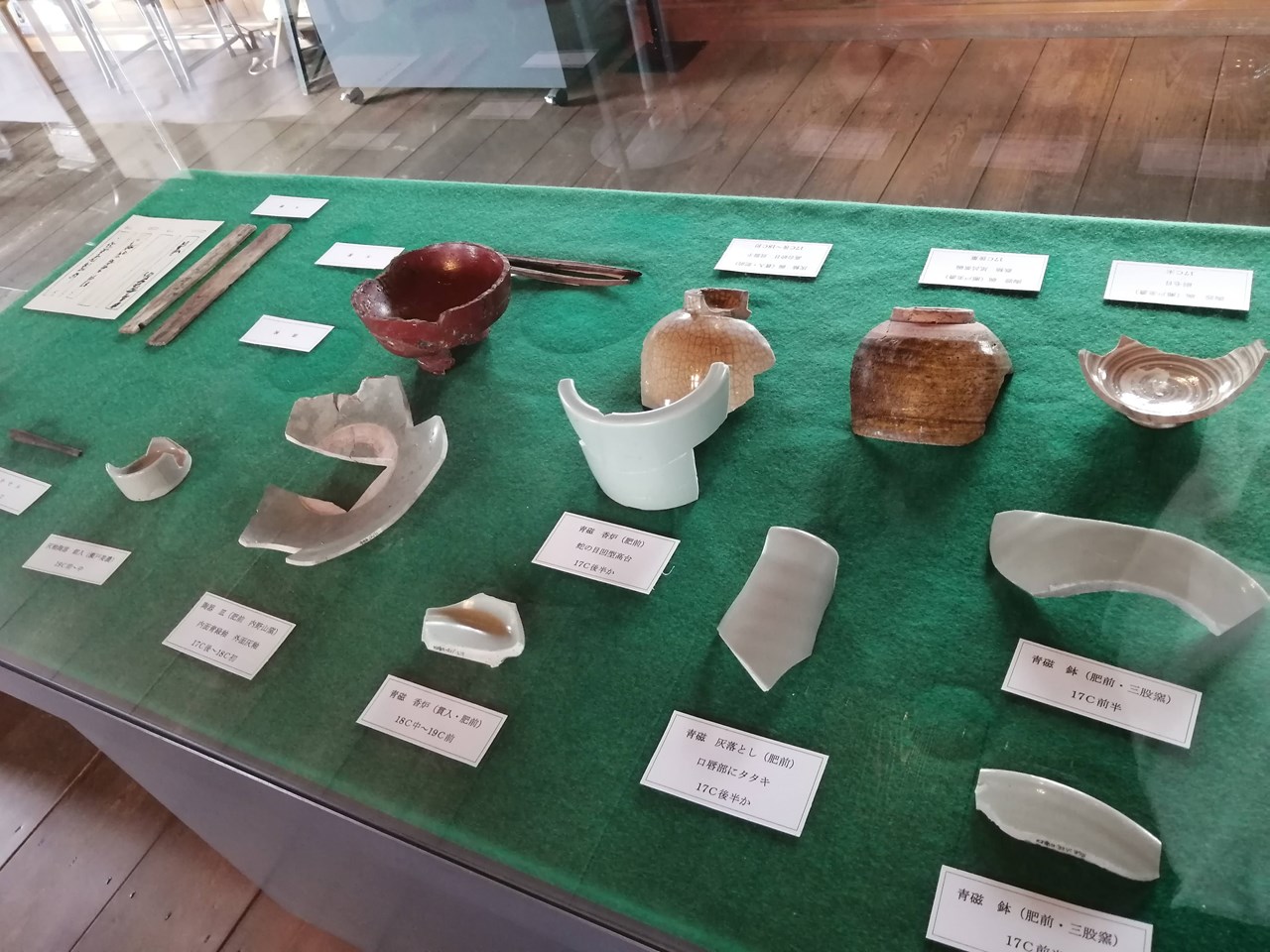 発掘調査で出土した瓦や陶磁器などの展示もされていましたよ。